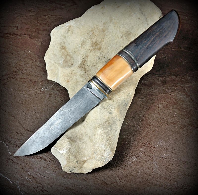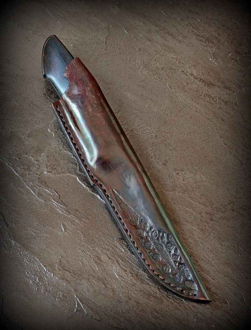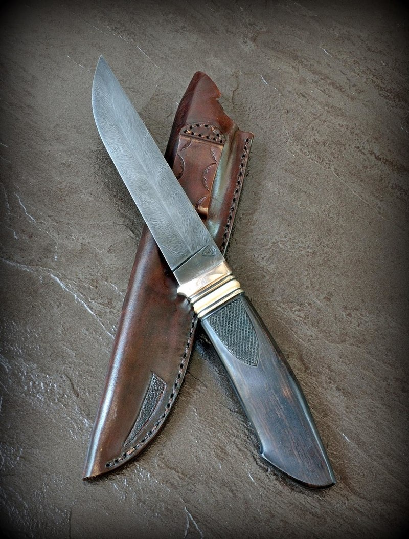 fartovy777 Откуда: Краснодар Машина: LC100 #28 Опубликовано: 17 июля 2016 (изменено) Ну тут все зависит от длинны рукояти и способа хвата- кому как нравица..+100я вот про что... попробуй пятке Угол в другую сторону дать... с такой же насечкой на срезе... смотреться будет хуже, но, вот, по мясу работать - будет горраздо удобнее!!!Есть разные виды ножей , рукоятей и хватов . В твоём случае , хорошо подходит финка. Там грибок , обратный угол наклона именно для хвата " грибком в центр ладони " . Я пришёл к этим формам , потому как они мне нравятся . На вкус и цвет товарищей нет. Ещё один нож покажу Нож Black Feather (Чёрное Перо) Белый метал, клык моржа морёный , эбен, ружейная насечка , тиснение по коже . Изменено 17 июля 2016 пользователем fartovy777 Вверх Поделиться сообщением Ссылка на сообщение Поделиться на других сайтах