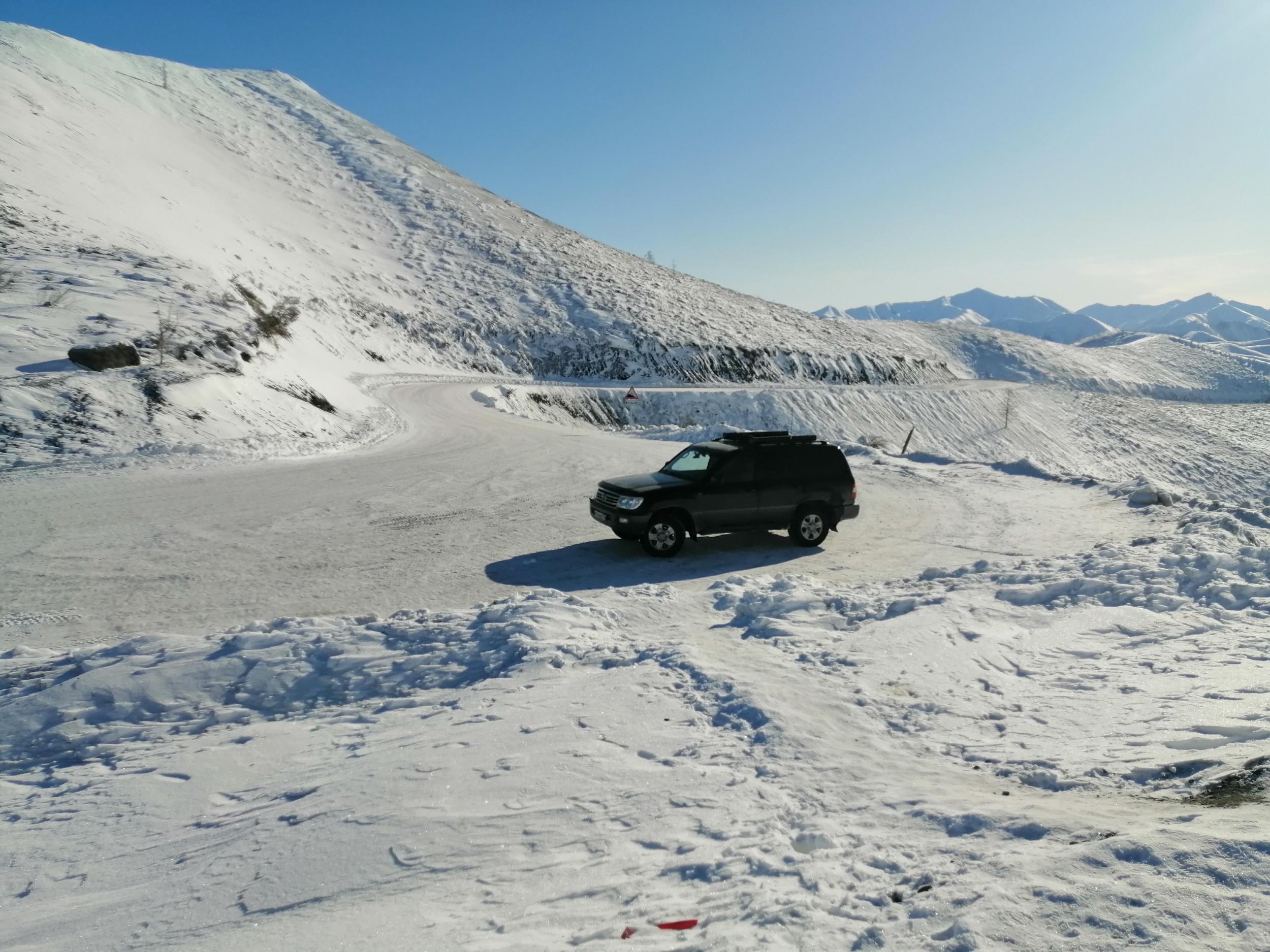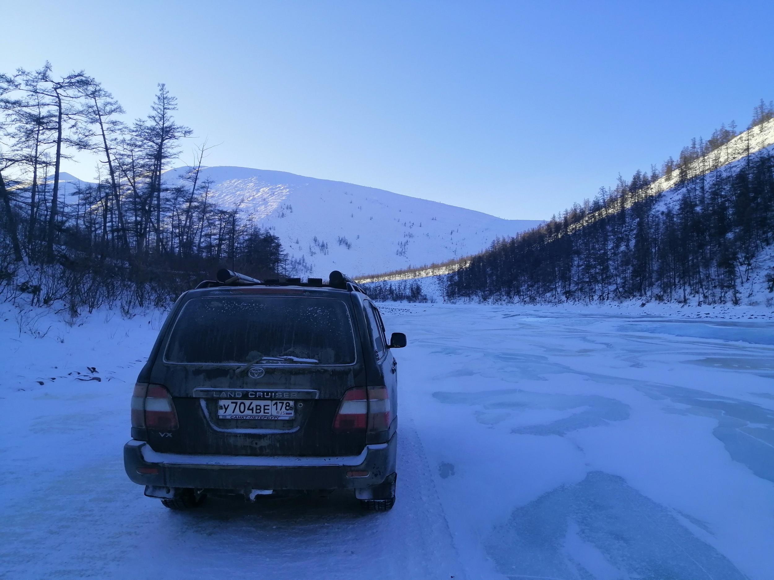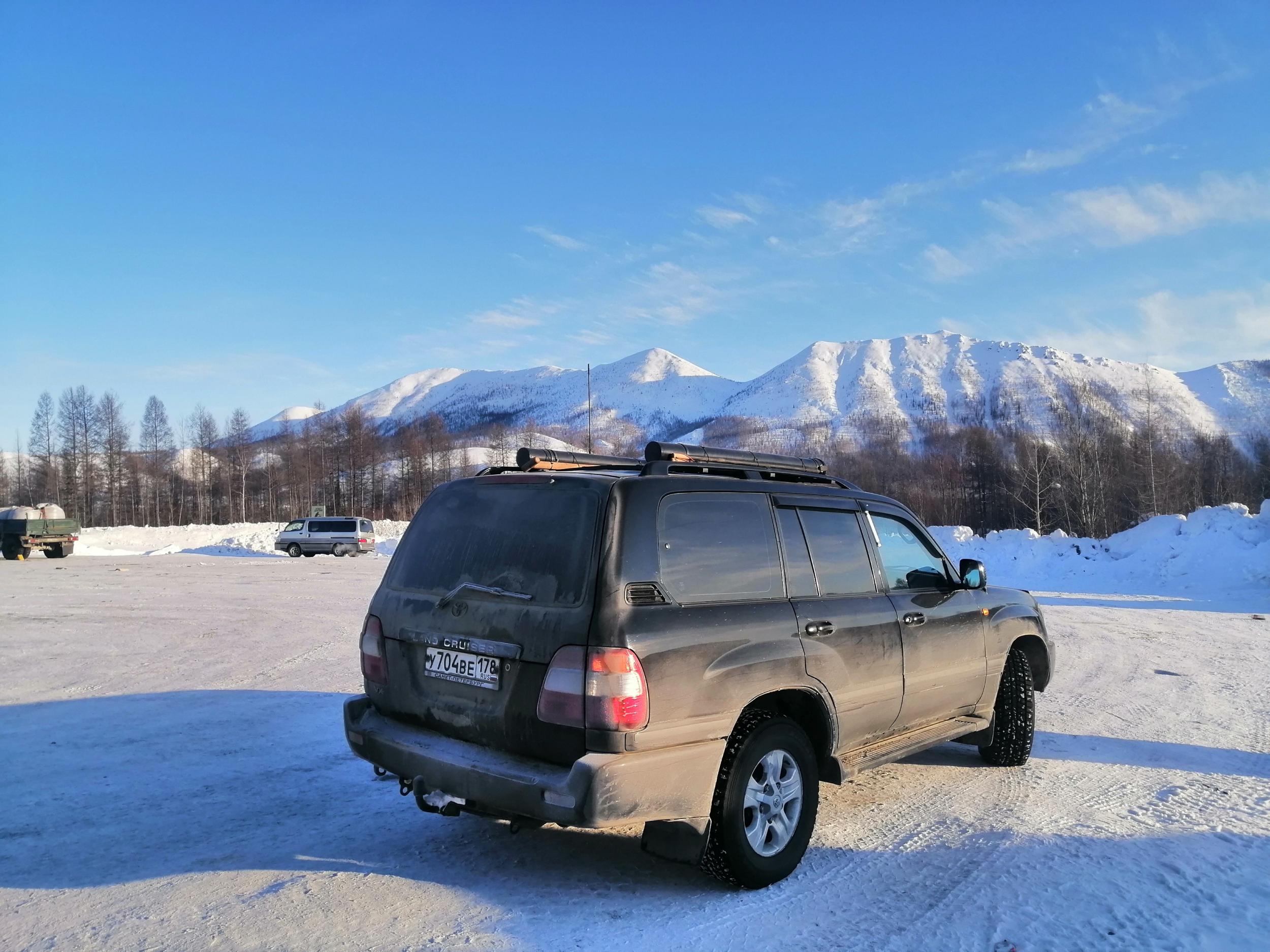 BYVALYJ61 458 Откуда: Санкт-Петербург Машина: ТЛК100 турбодизель механика. Ниссан примера P12. #25 Опубликовано: 4 апреля 2022 День девятый. Проснулся рано и 6 утра уже ехал или вернее двигался. Зимник два раза выходил на реку. Первый раз на 1,5 км., второй на целых 50. На второй передаче со скоростью 15-17 км/час двигался до темноты и лишь к ночи заехал в Батагай. Перед Батагаем 40 км. всесезонная дорога, довольно приличного качества. Да ещё заднее колесо днем стало терять давление и приходилось периодически его подкачивать. Ночевал на стоянке у АЗС . С утра поехал в Верхоянск и к обеду вернулся в Батагай. В шиномонтаже выяснилось, что вода на наледях попала между шиной и диском и замезнув отжала шину. Прогрели колесо и накачав до 4 bar выдавили воду. Пока делали колесо я поменял масло в двигателе. Перчатка для фотографирования на телефон. 2 Вверх Поделиться сообщением Ссылка на сообщение Поделиться на других сайтах