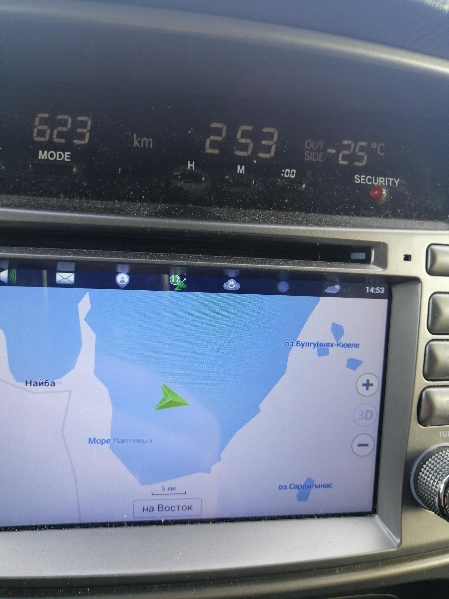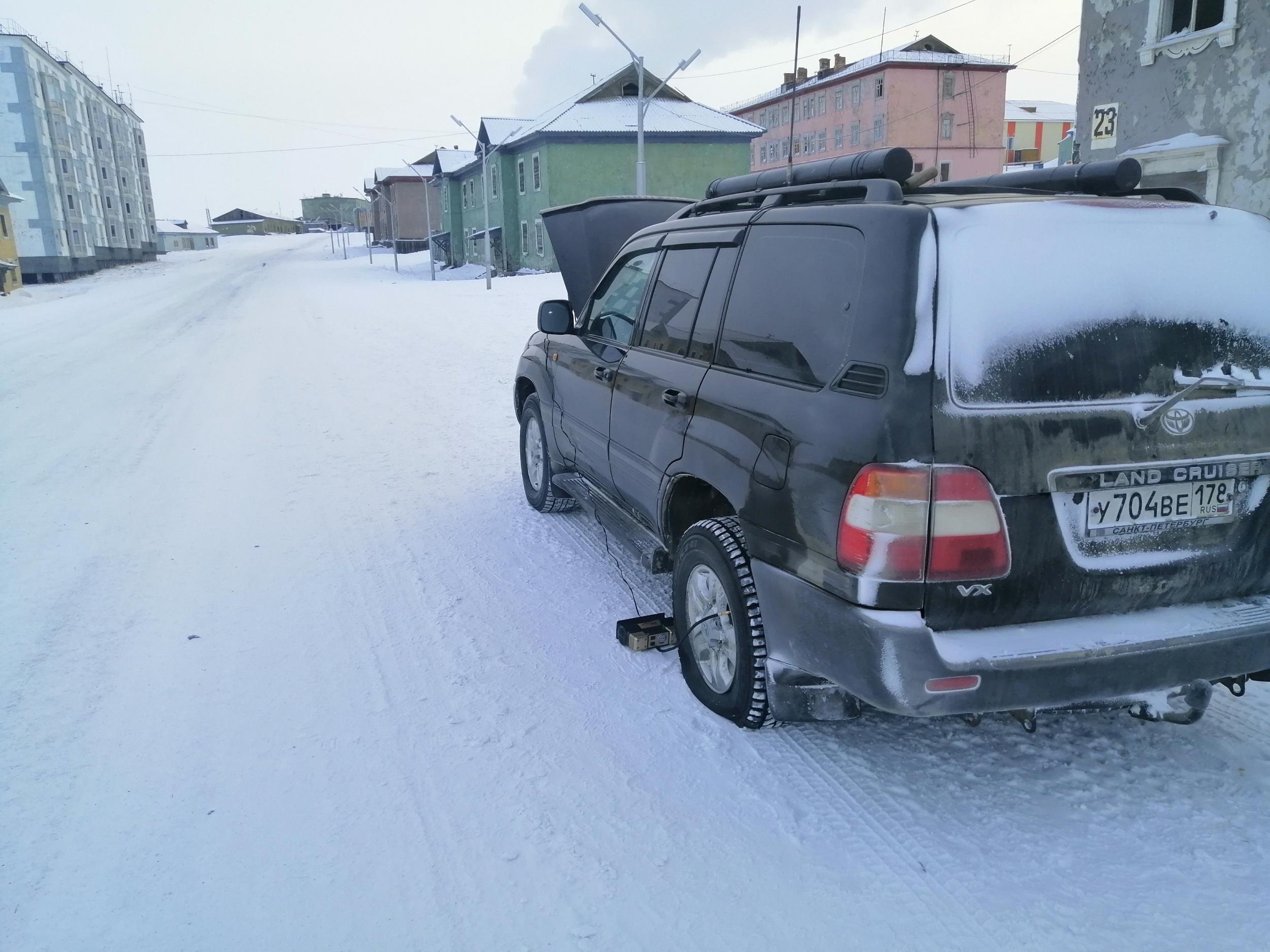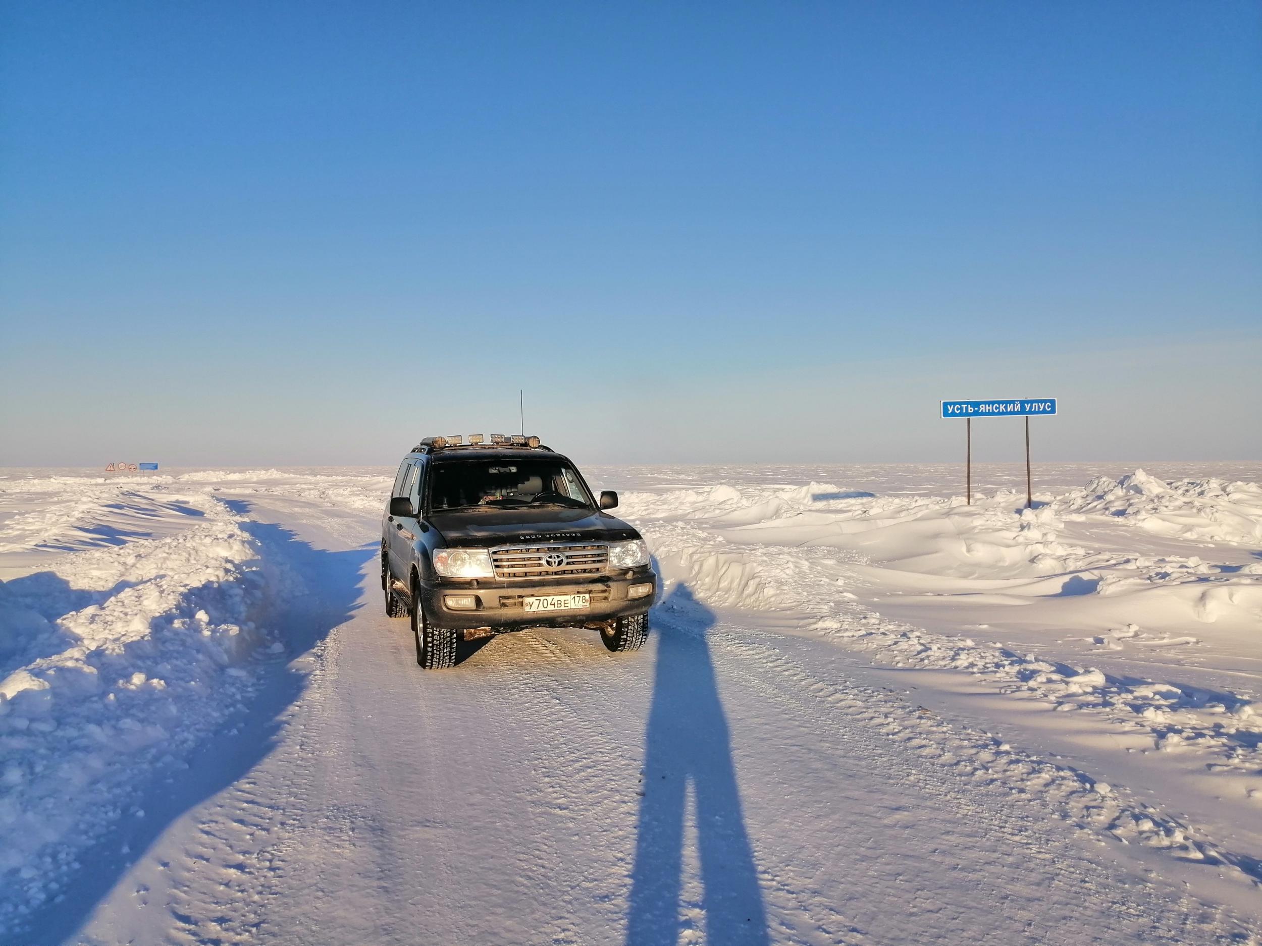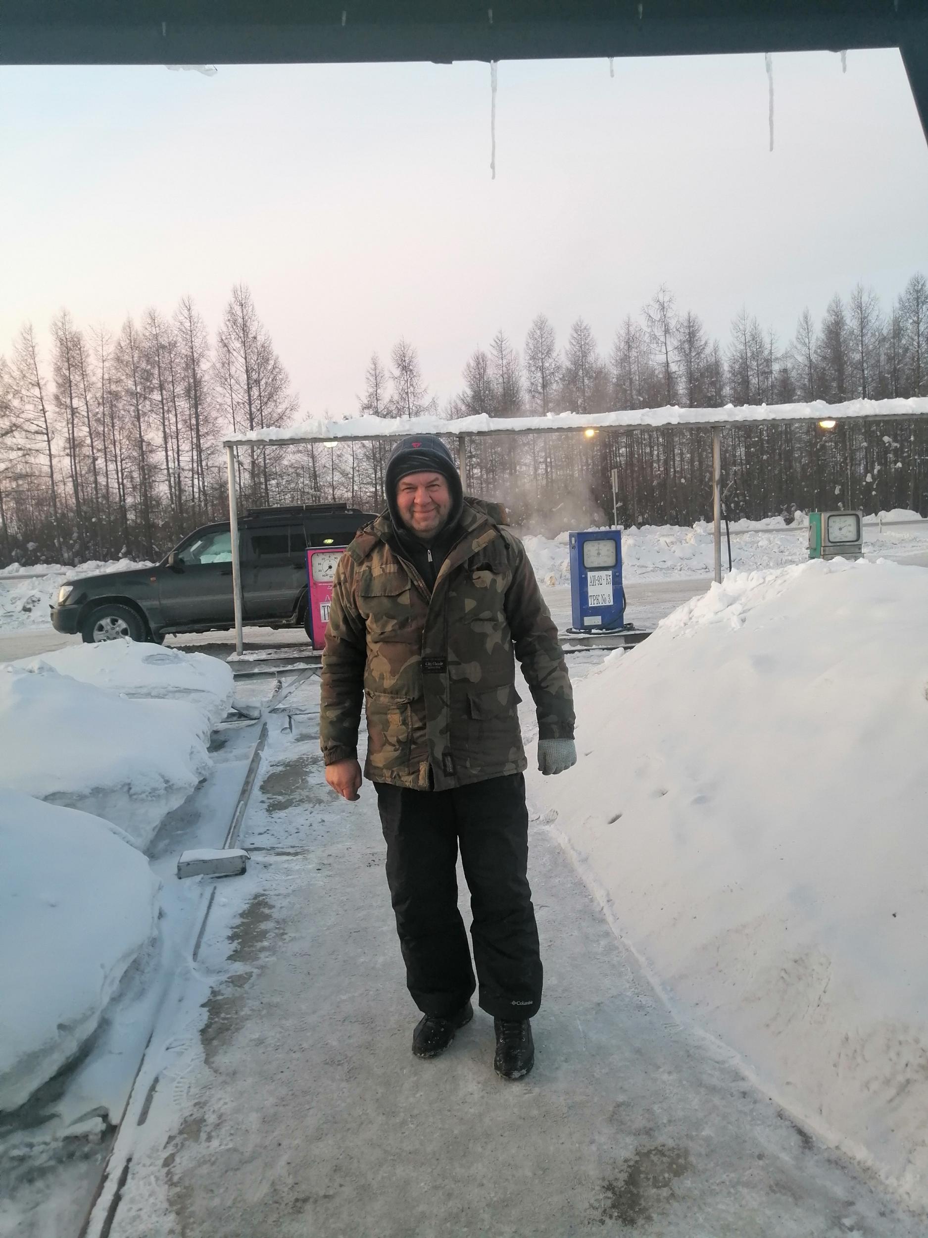 BYVALYJ61 458 Откуда: Санкт-Петербург Машина: ТЛК100 турбодизель механика. Ниссан примера P12. #25 Опубликовано: 4 апреля 2022 День девятый. Проснулся рано и 6 утра уже ехал или вернее двигался. Зимник два раза выходил на реку. Первый раз на 1,5 км., второй на целых 50. На второй передаче со скоростью 15-17 км/час двигался до темноты и лишь к ночи заехал в Батагай. Перед Батагаем 40 км. всесезонная дорога, довольно приличного качества. Да ещё заднее колесо днем стало терять давление и приходилось периодически его подкачивать. Ночевал на стоянке у АЗС . С утра поехал в Верхоянск и к обеду вернулся в Батагай. В шиномонтаже выяснилось, что вода на наледях попала между шиной и диском и замезнув отжала шину. Прогрели колесо и накачав до 4 bar выдавили воду. Пока делали колесо я поменял масло в двигателе. Перчатка для фотографирования на телефон. 2 Вверх Поделиться сообщением Ссылка на сообщение Поделиться на других сайтах