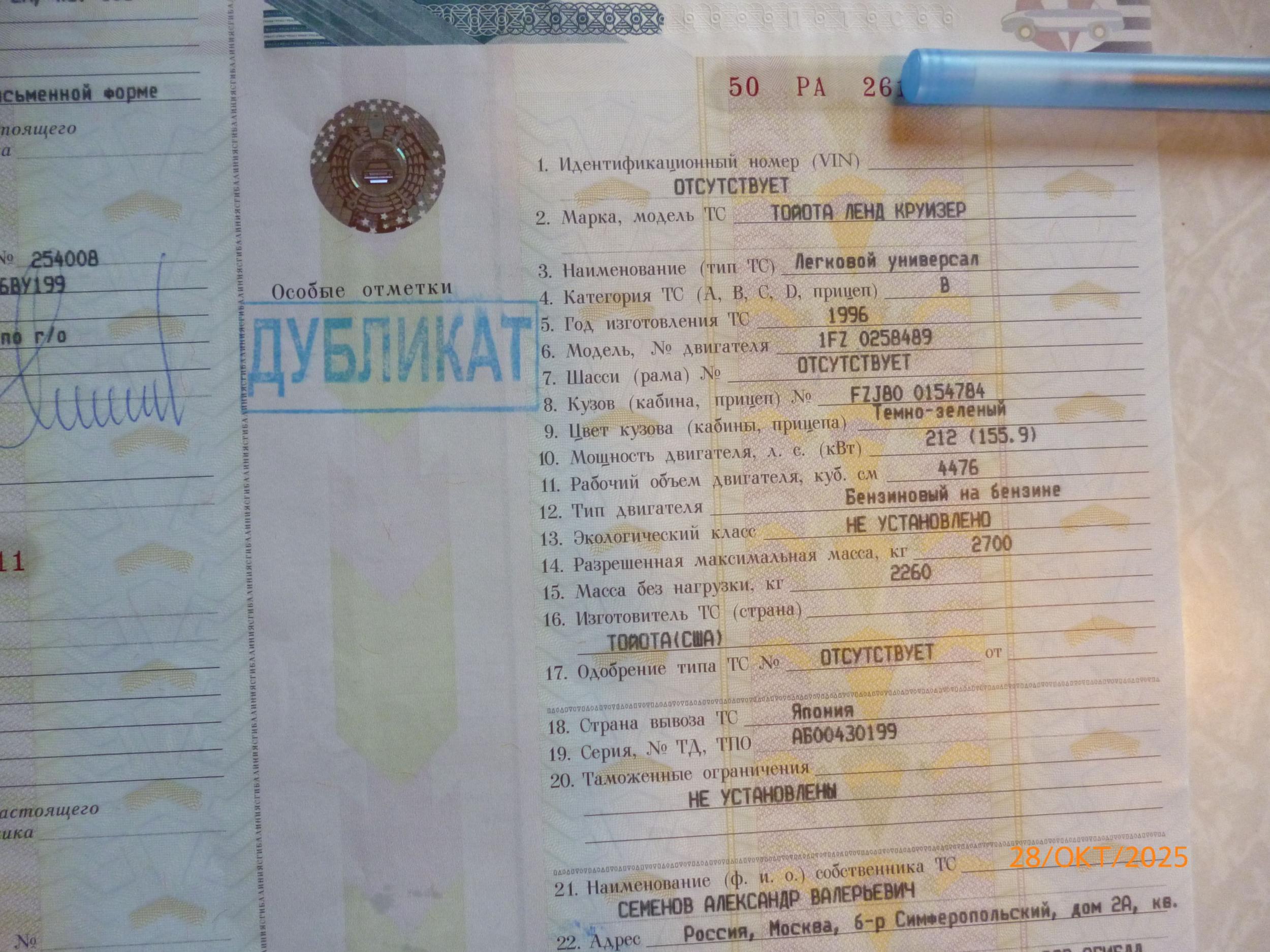 Valtuz 5 Откуда: Москва, Шаховская. Машина: TLC 80 1FZ-FE VX Limited #1 Опубликовано: 28 октября Приветствую уважаемую публику. Пришло таки время выставить на продажу свой TLC 80, двигатель 1FZ-FE (родной), автомат, руль СПРАВА, 1996 года выпуска, пробег 500.000 км. Покупал его в далеком уже 2008 году c пробегом в 300, в 2018 была перерегистрация по наследству (изначально учет был на отце, после 18-го года на мне). ПТС в данный момент дубликат, был выдан в 2018 году при перерегистрации с пометкой "взамен сданного" (гайцы сказали, что старый ввиду его ветхости он у них через принтер не пройдет и выдали новый, хорошие сканы старого таможенного ПТС предоставлю в личку). В 2012 году установил газовое оборудование, проехал на газу 110 тыс., за все время ни одного крупного нарекания на него не было, на газу двигатель работал ровно, на бензине немного потряхивало. Снял вынуждено в 2021 (тогда, если кто помнит, у властей резко засвербило в одном месте насчет узаконивания всего и вся, а так-же выискивания и обнаружения "запрещенки"), у нас в Шаховском районе М.О. рядом с гаишниками стала периодически появляться "буханка" технадзора. Получить аннулирование регистрации, даже в теории, в планы не входило, поэтому плюнул и снял (но некоторые атавизмы остались), ибо к этому времени я давно ушел с работы и ездить стал ну очень мало. Итак по машине: Кузов - при мне было 3 ДТП (одно из них незначительное), все в переднюю часть. Хвала японским инженерам - все на болтах, открутил плохое и прикрутил хорошее, в том числе и то, что просто сгнило (так тоже бывает), поэтому вся морда, включая жабо и поводки дворников - контрактные (если кому принципиально - фото последствий аварий тоже могу предоставить). Двери багажника - верх и низ, менялись на новые (именно новые, тогда ценник на запчасти был очень гуманный) в 2008 году, сразу после покупки. Подваривались задние части порогов и ниши задних крыльев. Все соответственно красилось. В данный момент в родном окрасе остались только задняя часть крыши (после люка) и верхняя часть водительской двери, ну и нутрянка (передняя и средняя стойки). К сожалению, есть пара незаводских отверстий, прогрызанных бобрами, на внутренних закатах колесных арок, несмотря на регулярный антикор. Антикор делал раз в три года, в общей сложности раз 5, последние три раза с мойкой днища и рамы. Rust stop внутрь, по днищу пушсало и АМС-3 с тем-же Rust stop-ом и ATF-кой. ДВС - на 380 тысячах (2013 год) менялись сальники клапанов, цепь, звезды, башмаки и натяжитель, масляный насос, прокладки (все оригинал), ну и свечи соответственно несколько раз. В данный момент можно еще отрегулировать клапана, но это неточно. Замена масла ВСЕГДА раз в пять тысяч (5W-40). АКП - вообще о себе не напоминала, мягко и незаметно делает свою работу, четыре замены масла (Mobil ATF 220), две из них с фильтром (оригинал) + поставил выносной фильтр от Хонды. На раздатке имеется небольшое запотевание, в зимнее время даже капелька. Ходовка, мосты,рулевое, карданы - все ржавое, но тем не менее очень даже живое, но немного приложить руки надо. Карданы менялись на контрактные (как оказалось, можно было обойтись и без этого), передний мост перебирался последний раз тысяч 20-25 назад, включая редуктор (перебраный), полуоси (оригинал), фетры и прокладки (оригинал), ШРУСы (неоригинал). Тем не менее к редуктору есть вопросы, но не особо критичные. Так-же нужно поменять сайлентблоки передних